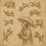 Origin: One theory traces it to 17th-century England, when heavy storms sometimes washed dead animals into the streets, making it seem as if “cats and dogs” had fallen from the sky.