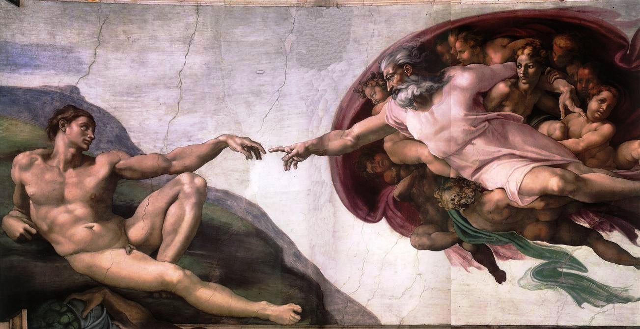 Another extraordinary creation is the ceiling of the Sistine Chapel in Vatican City. Painted between 1508 and 1512, the ceiling includes hundreds of figures and biblical scenes. One of the most famous images from this work is The Creation of Adam, showing the moment God gives life to Adam.